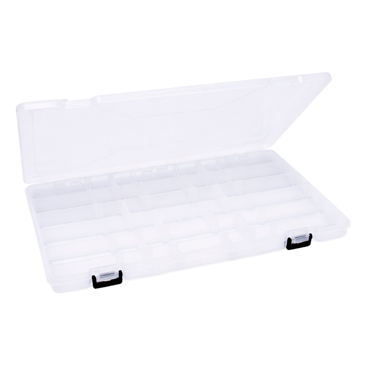 Possui paredes mais grossas, que garantem maior durabilidade, além de sistema interno com paletas de distribuição ajustáveis, permitindo adaptar os compartimentos ao tamanho ideal das iscas e acessórios. Conta com trava de fechamento, proporcionando mais segurança durante o transporte e evitando aberturas acidentais. Seu formato amplo facilita a visualização e o acesso rápido aos itens armazenados.