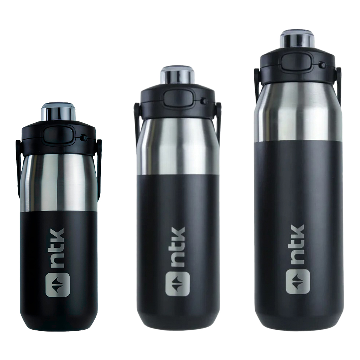 A linha de Garrafas Térmicas Isomax da NTK (disponível em 550ml, 750ml e 1L) é ideal para quem busca hidratação com excelência em isolamento térmico e durabilidade.